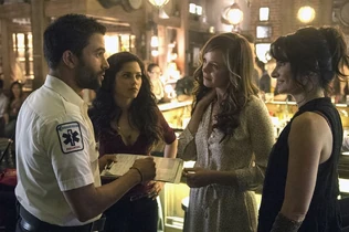 That night, Ingrid heads to The Bent Elbow to talk to Freya, complaining that despite being a bad ass witch, everything's still hard. But when Hudson suggests that they do a spell similar to the one that resulted in Barb's pregnancy, Ingrid balks, only to acquiesce when Freya encourages her to use magic. Back at the hospital, Dash's patient tells him that many more will die and claims to know what he is before flatlining; in lieu of any medical equipment, Dash puts his hands on his patient's chest and shocks him back to life, only for the man to flatline again. Once Ingrid, Freya, and Hudson perform the spell, Ingrid receives a call from Dr. Foster saying that she got the job; however, her joy is short-lived as, already drunk, she falls off and injures her shoulder. The incident interrupts Wendy and Freya's tarot session, where the latter learned that Killian is still alive and that his spirit animal is an owl, and the former uses magic to help with Ingrid's shoulder, which the EMT (the guy from the library) claimed was dislocated.